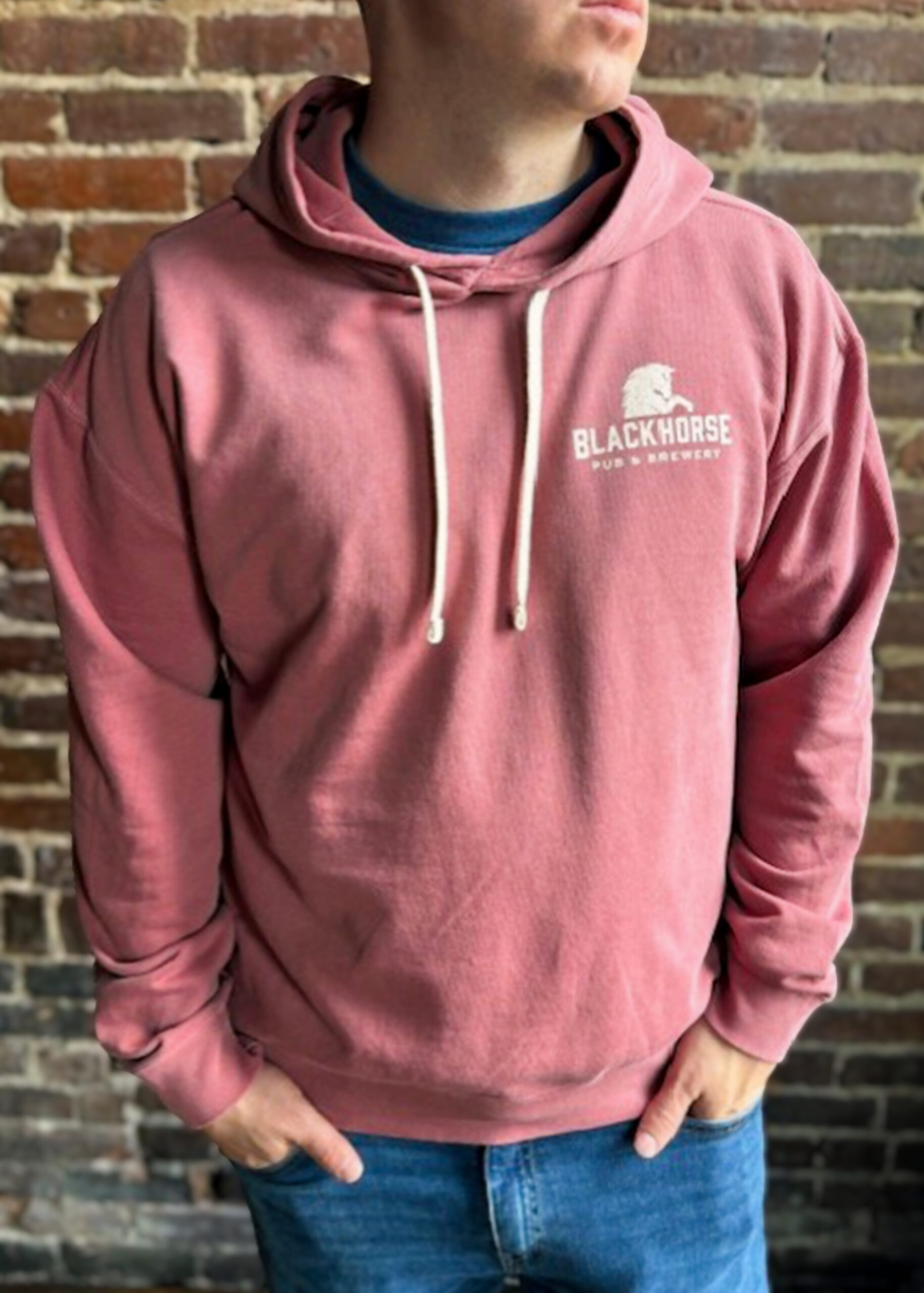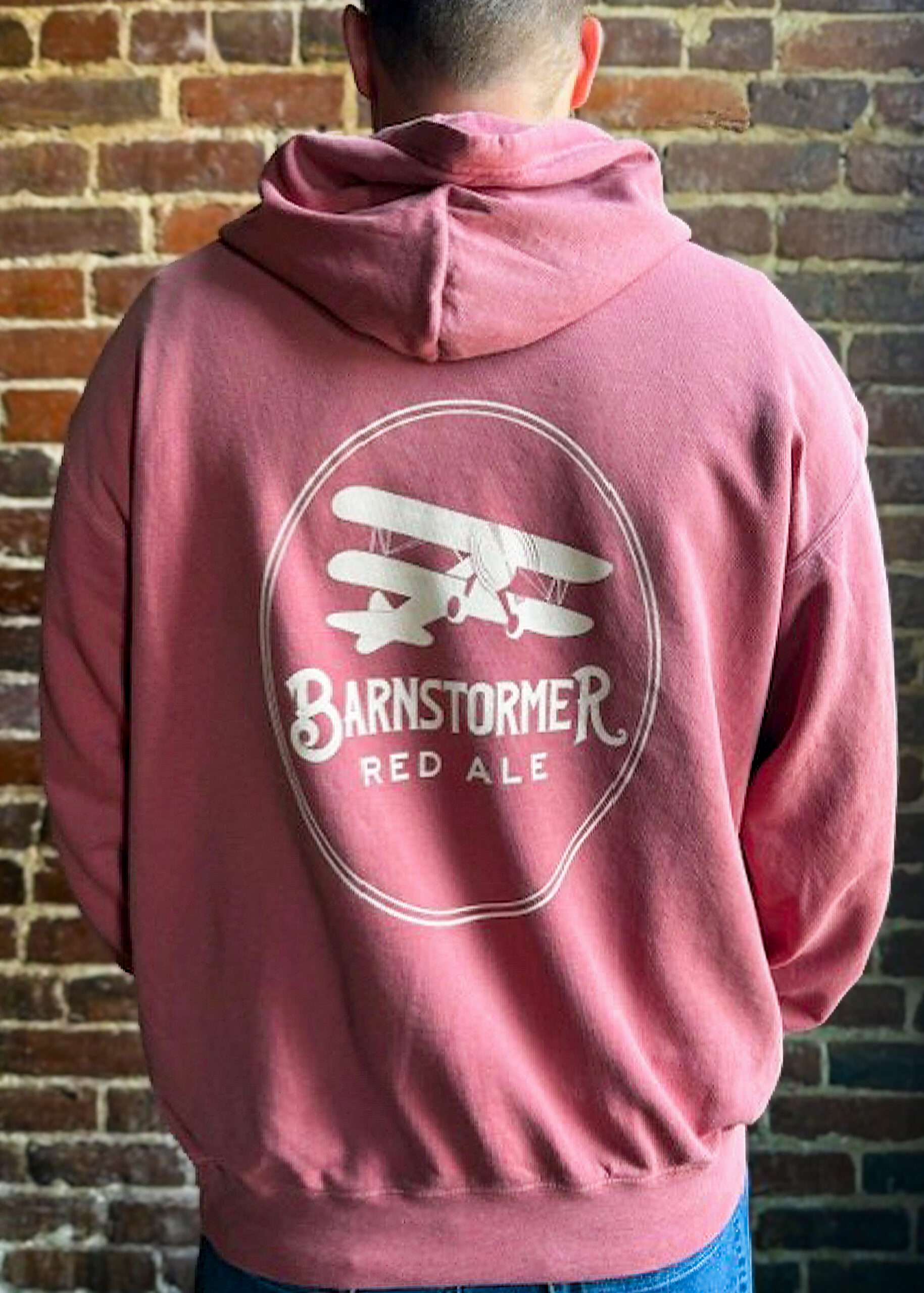 Premium Comfort Colors hoodie. Relaxed fit with pocket pouch. Features our Barnstormer Red Ale logo on the back.